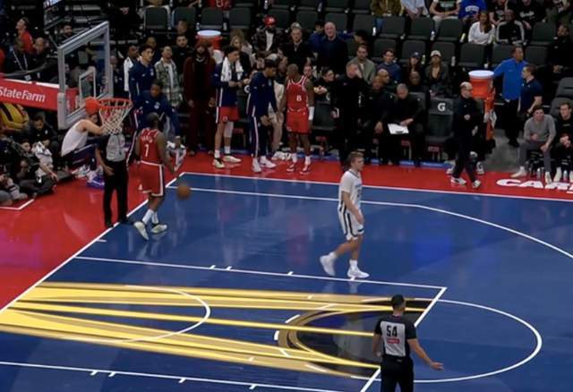 最后2.2秒落后5分,泰伦卢坐替补席一脸呆滞,哈登主动喊暂停